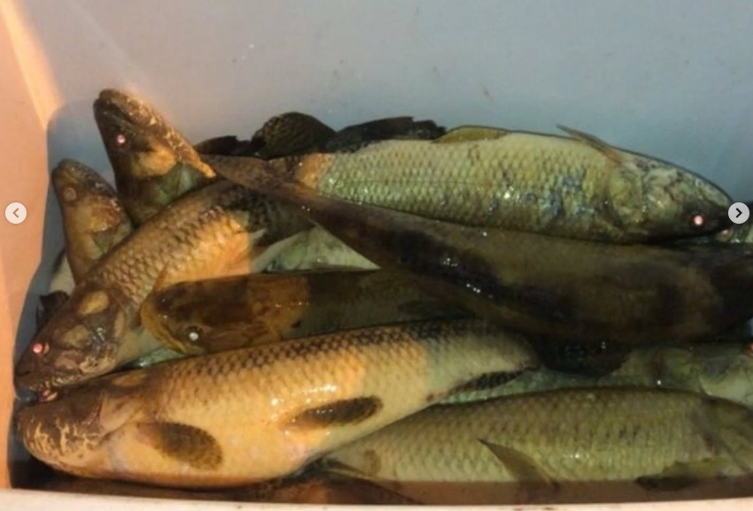 Ainda foi encontrado, no veículo, uma rede de pesca de malha 70 mm com 30 m, uma tarrafa e demais petrechos utilizados para a pesca ilegal de 42 exemplares de peixe, da espécie Traíra.