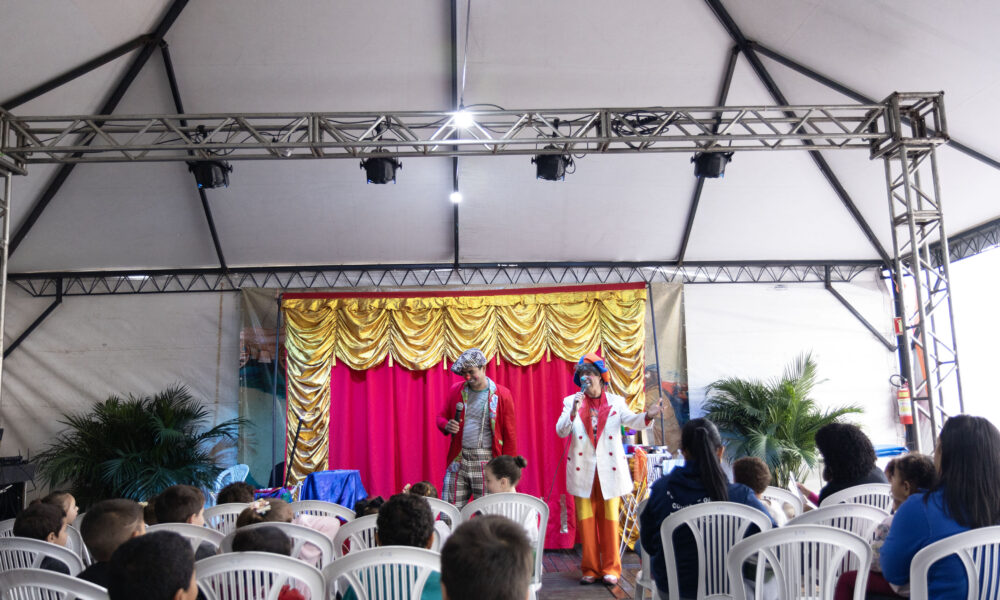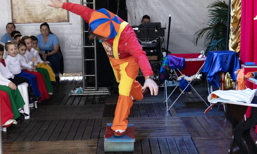 Na manhã desta quinta, os alunos das escolas municipais puderam acompanhar o Espetáculo de Teatro de Bonecos Dom Quixote da Cia Passa Lá e o Show circense Largatixa + Timbinha e Timbiloca.