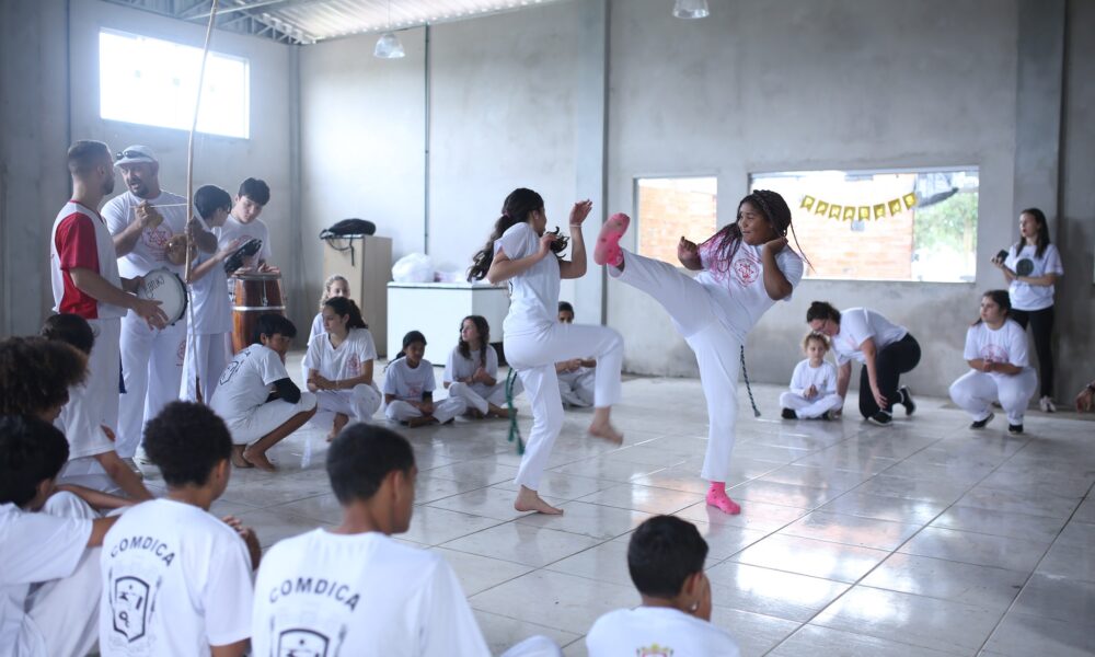 Aulas de Capoeira com turmas nos horários 14h às 16h, 16h às 18h e 18h às 20h.