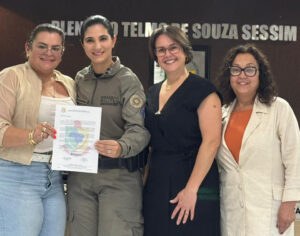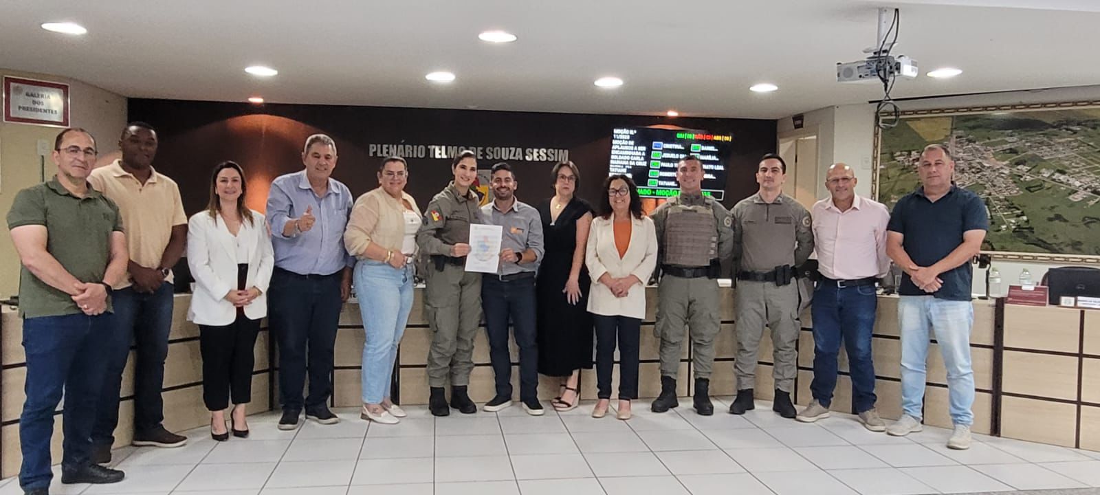 A honraria, uma proposta da vereadora Tatiane Kestering, com apoio de Cristina Bueno e Sandra Cardoso, foi outorgada em razão do elevado grau de comprometimento, da postura exemplar e da condução técnica e sensível com que a militar tem ministrado as atividades do PROERD às turmas de quinto ano.