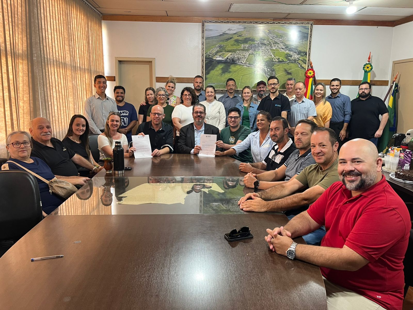 O ato de entrega do ofício da emenda contou com a presença do prefeito Regis Bauermann, dos secretários Aloísio Verdinho, Giovani, Gabriela, Ana Paula e a vereadora progressista Luiza Helena, Vicente Heinze representando o senador Heinze e demais colaboradores.