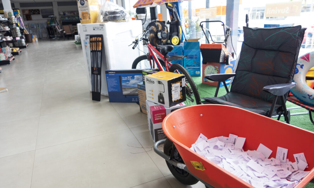 Ao longo do mês, os clientes que realizaram compras a cada R$ 100,00 ganharam um cupom para concorrer a diversos prêmios, entre eles uma máquina de lavar roupa, bicicleta e air flyer.