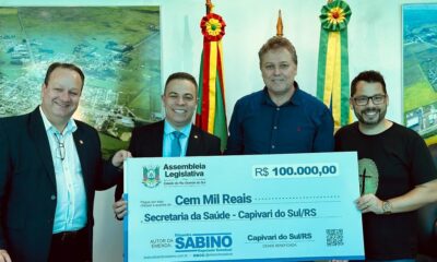 Nesta quinta-feira, 06 de junho, foi oficializada a entrega de Emenda Parlamentar de autoria do deputado estadual Elizandro Sabino para a cidade de Capivari do Sul....