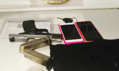 Policiais do 3° Batalhão Rodoviário da Brigada Militar prenderam um homem por porte ilegal de arma de fogo e placas adulteradas na ERS 040, em Capivari...